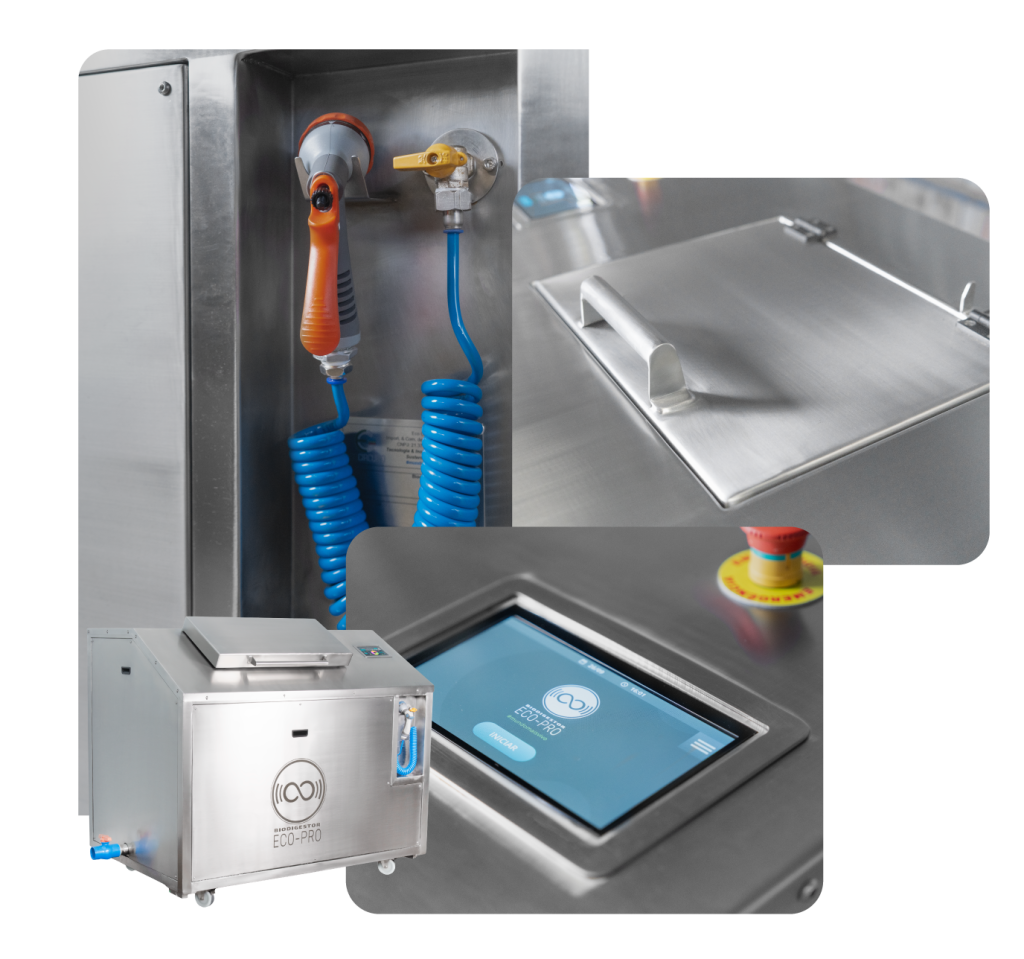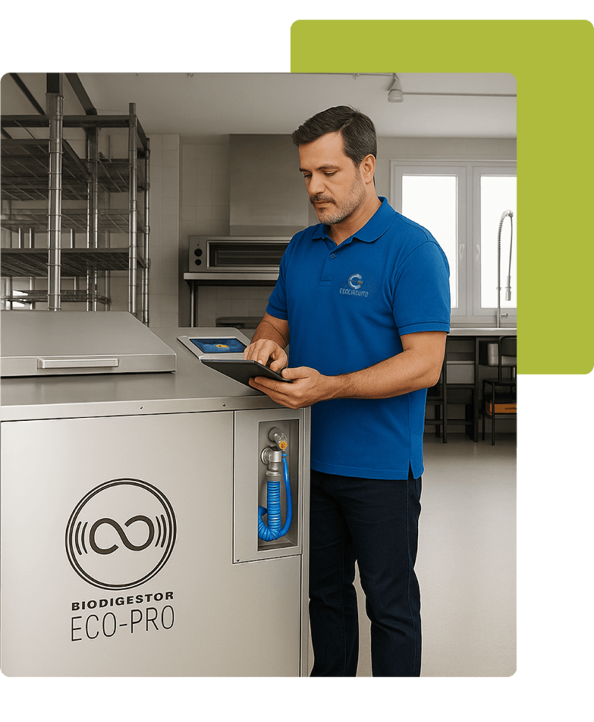 O Biodigestor ECO-PRO é um equipamento automatizado que realiza a digestão de resíduos orgânicos diretamente na fonte, transformando restos de alimentos em efluente e seguro para descarte na rede de esgoto ou para tratamento e reuso.